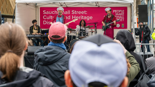 The Sauchiehall Street Music Day celebrates this legacy with a line-up of local grassroots bands, student performances and residents across two stages. We will also have music activations in shops on the street, taking music instore, as well as archival drop ins.