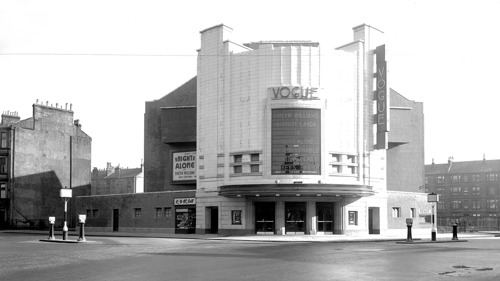 Moving into the 1920’s and 1930’s cinemas sprung up all over the city, as going to the pictures became an established part of life. Cinemas such as the ABC’s flagship cinema The Regal on Sauchiehall that opened in 1929 to replace the Panorama (where Arthur Hubner had shown the first moving picture in the city); Maryhill’s The Roxy built in 1931 popular with soldiers from the nearby barracks; on the southside The White Elephant in Shawlands which included an inside car park; and the Ascot (later Odeon) in Anniesland the last of the larger suburban cinemas built in 1940. Several Glasgow cinemas were stunning Art Deco buildings, their clean lines and modernity adding to their appeal, a contrast to the overcrowded and aged tenement housing many lived in at the time. Examples included the beautiful Vogue Cinema in Govan, designed by James McKissack which opened in 1938 with a capacity of 2500, and the Lyceum Cinema also in Govan, designed by CJ McNair for Caledon Pictures Ltd, that opened in 1938 to replace a previous music hall and cinema.
